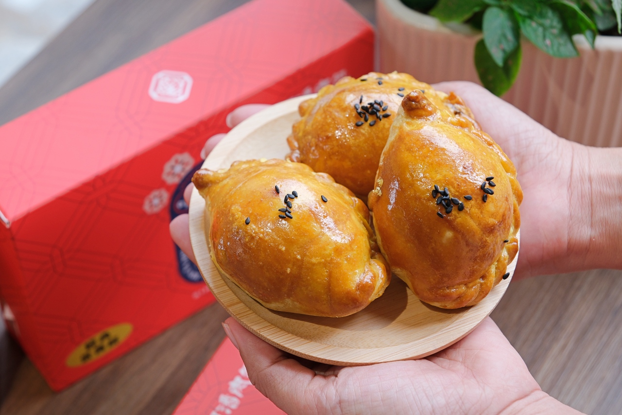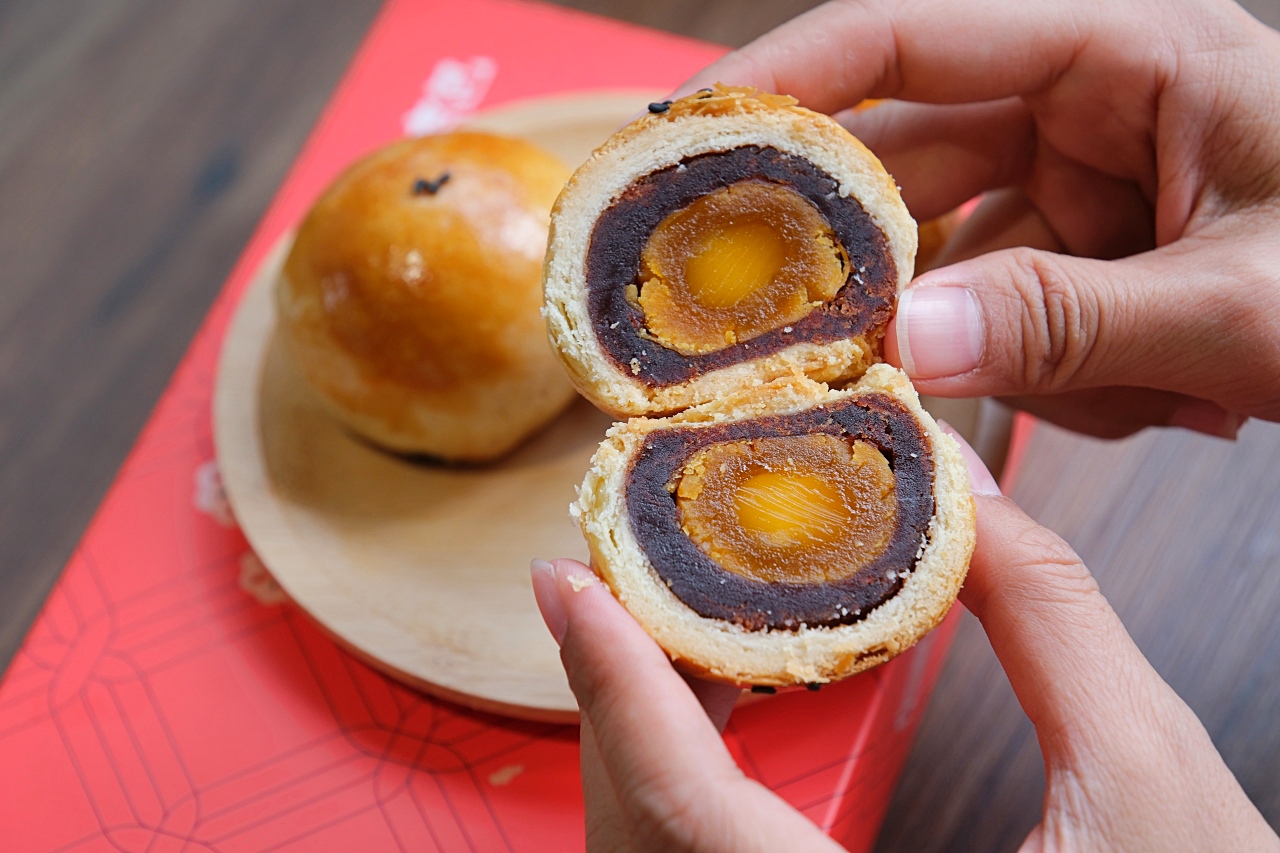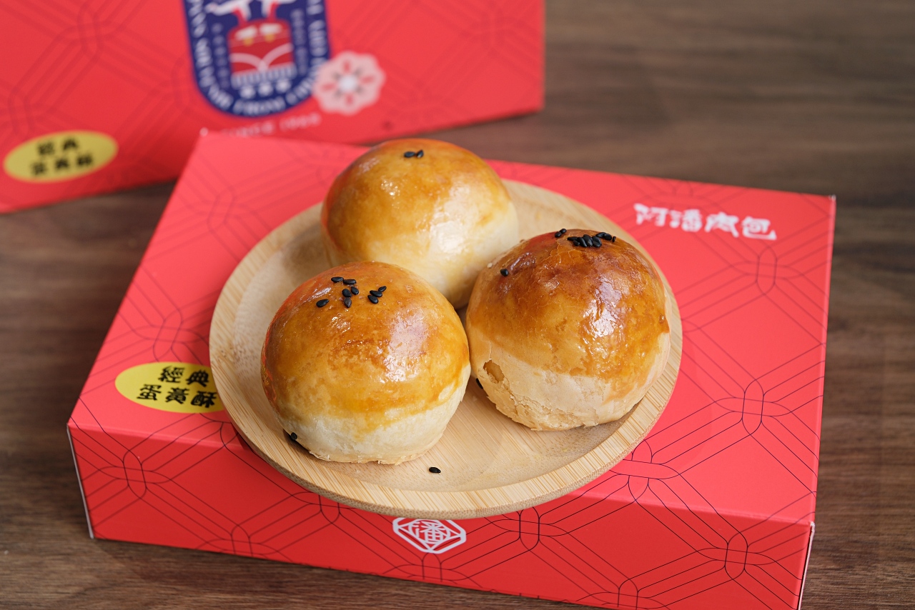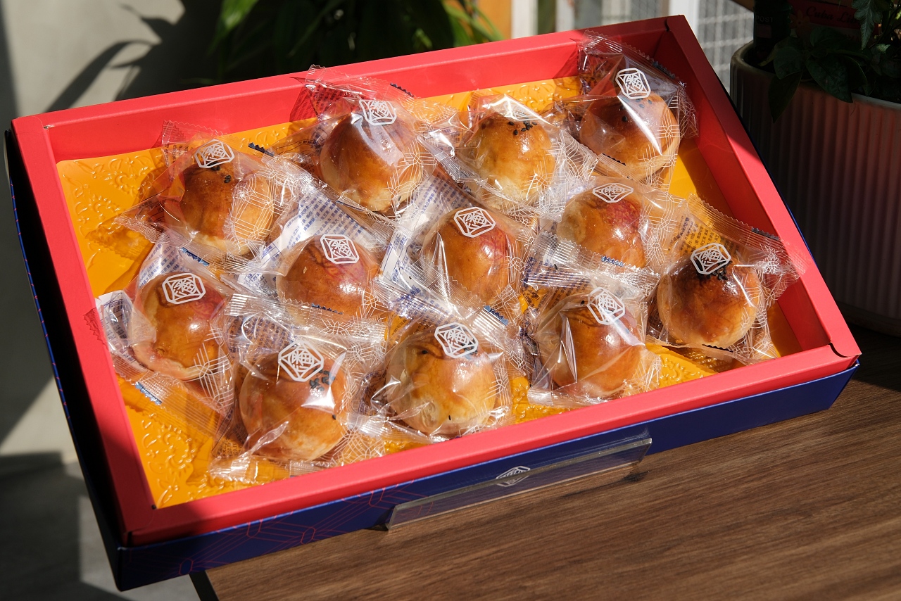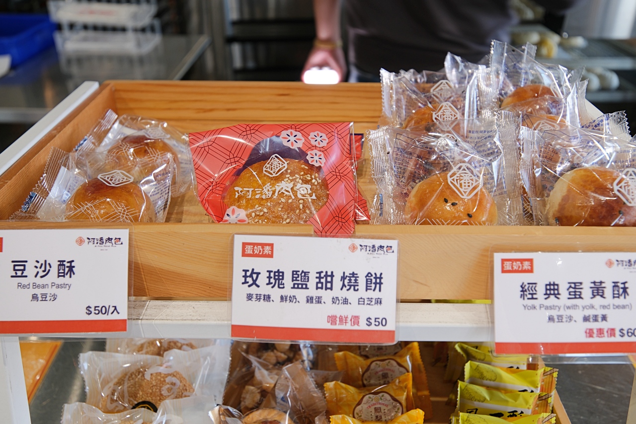 中秋節熱門的蛋黃酥這裡也有!不必等中秋節,平常就能買到,蛋黃酥也累積了不少死忠客群。外皮酥而不油,內餡紮實,蛋黃鹹香濕潤、豆沙不過於甜膩,是偏傳統的風格,節慶時特別多人預訂。要不是身為肉包店,這樣的實力很可能變成蛋黃酥專賣(笑)。