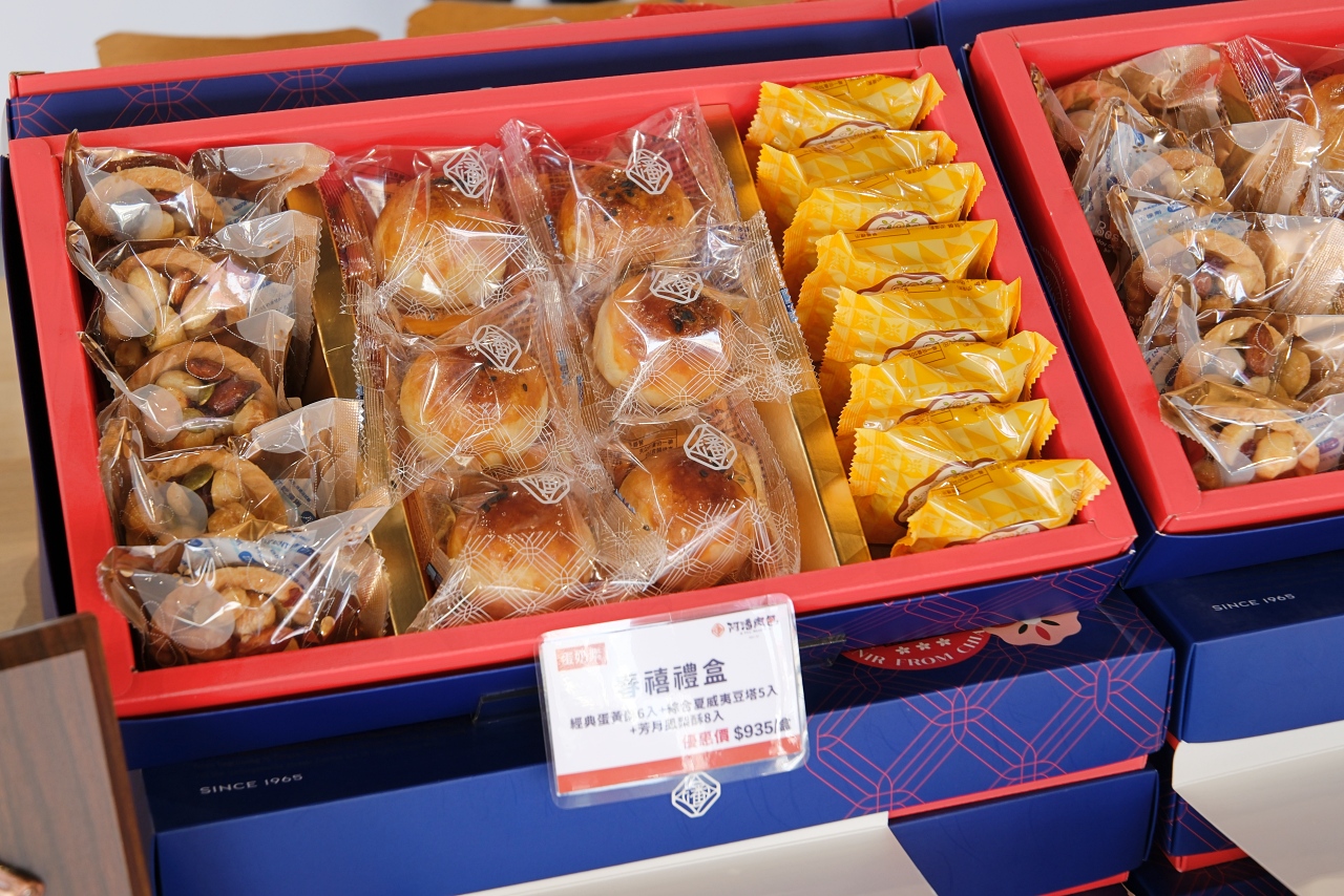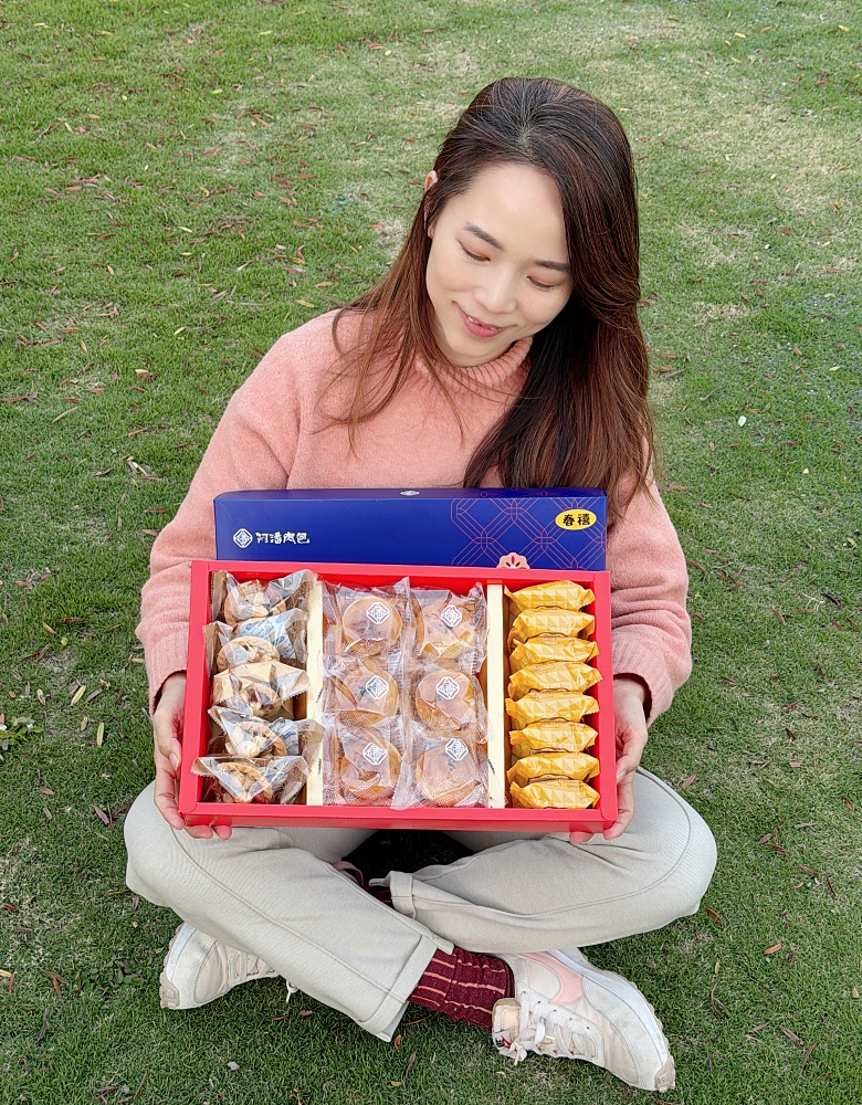 我手上這盒是春禧禮盒,包含有:經典蛋黃酥6入+綜合夏威夷豆塔5入 + 芳月鳳梨酥8入,雖然是包子店,但中式點心做的完全不輸給肉包饅頭,感受到他們在產品上的用心,不是隨意做做那種。