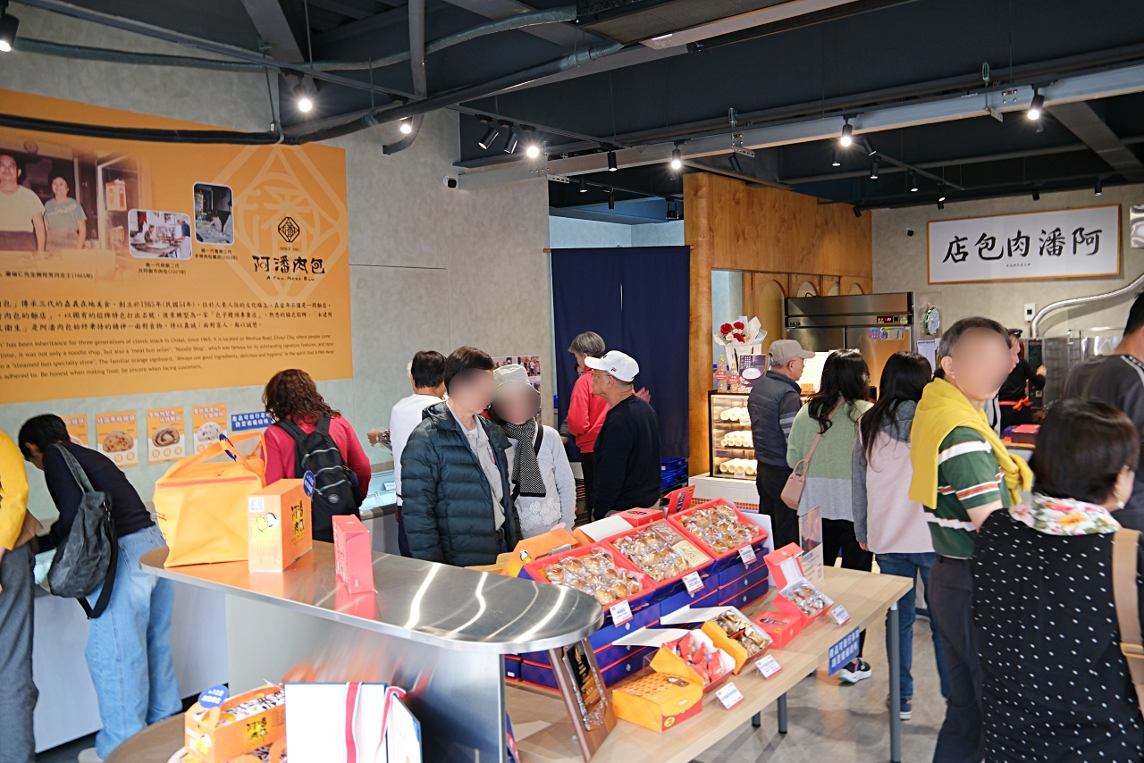 「阿潘肉包」民雄店就在大馬路旁,第一眼真的會被外觀吸引住。遠遠看過去,還以為是什麼甜點禮盒專賣店、咖啡廳,完全顛覆我對傳統包子店的印象。木製窗框搭配大面積落地窗,從外面就能看到店內明亮又舒服的空間。實際走進來才發現,來買的客人幾乎都是熟門熟路,一進門就直接拎走好幾袋包子、饅頭,超高人氣真的有嚇到我。