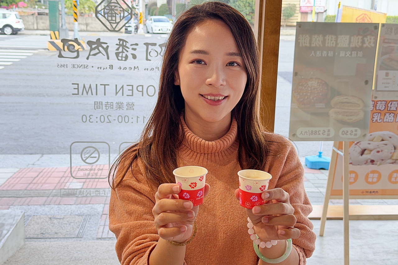 店裡還有可以搭配包子一起帶的豆漿、杏仁茶。一進門就被店員請試喝,我跟漢斯先生一喝都眼睛瞪大,口感濃郁甜度剛剛好,配著肉包或饅頭一起吃就是在地人固定的早餐組合。