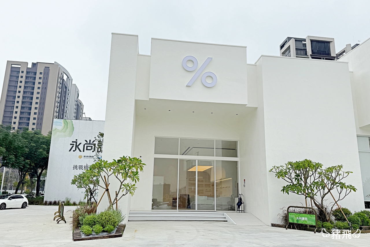 「%Arabica 台中店」與永尚謙玥接待中心比鄰而居,出入口同一個,左邊是咖啡館,右邊是接待中心。