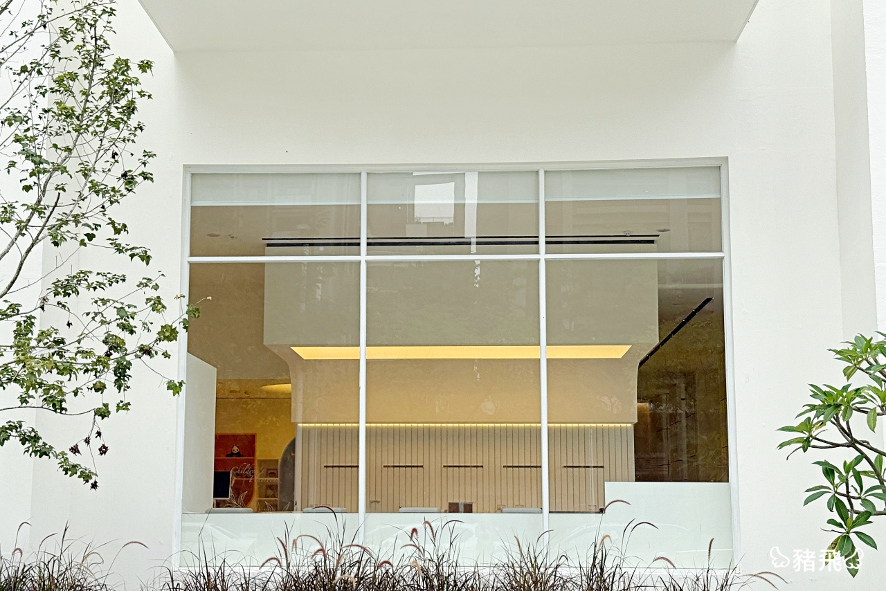目前外觀是純粹的白色,掛上LOGO就顯得很有質感了,加上周圍的綠意打造,多了幾分清新。