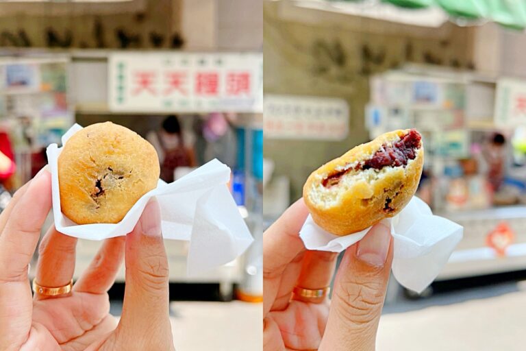 每一顆炸饅頭外表呈現金黃色圓滾滾飽滿的模樣,光是金黃酥脆的外表就超吸引人!紅豆泥內餡香甜,甜度比較高,配著無糖茶或黑咖啡就是很滿足的台式下午茶啦。我通常都會買10的倍數,跟家人朋友一起分享。