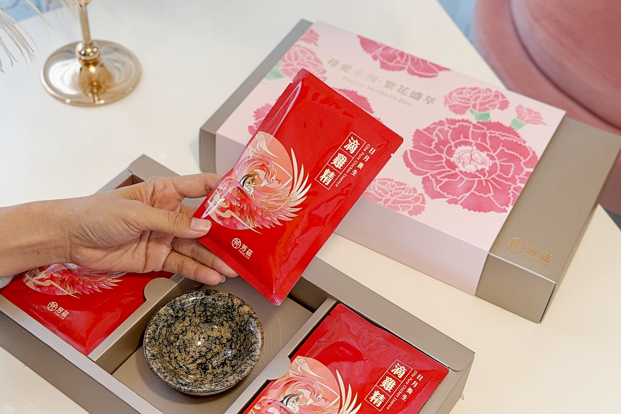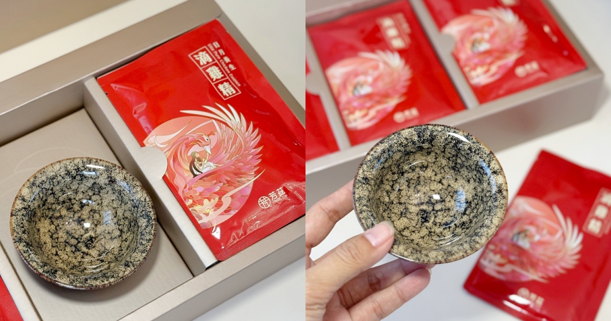 第一眼看到粉嫩色系的2026年母親節禮盒,充滿溫柔感,讓我眼睛為之一亮。以「母愛永恆 繁花盛萃」為主軸,一盒6入還送一個質感又獨一無二的天目釉品茗杯。滴雞精加熱後倒入杯子,剛好一包就是一杯量,充滿儀式感。