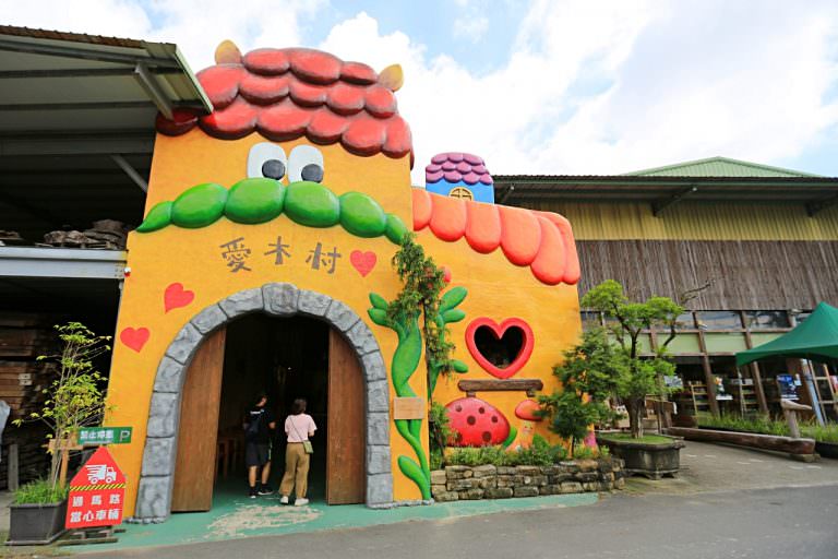 來到嘉義,與木頭相關的景點,除了檜意森活村,還有這個很熱門的景點『愛木村觀光觀光工廠』!雖不在鬧區但知名度不小,是許多親子客指定要來的景點。建築物外觀色彩繽紛像是一座童話城堡,跟傳統觀光工廠給人制式無趣的感覺大不同,愛木村就如同它的名字,這裡集合了各種珍貴木材,特地搜集阿里山珍貴的老木材並加入創意發想,賦予這些木材新生命,規劃了許多互動遊戲設施、親子木藝DIY課程等,讓老中青的客人來到這裡都能夠認識具有歷史意義的創意體驗。