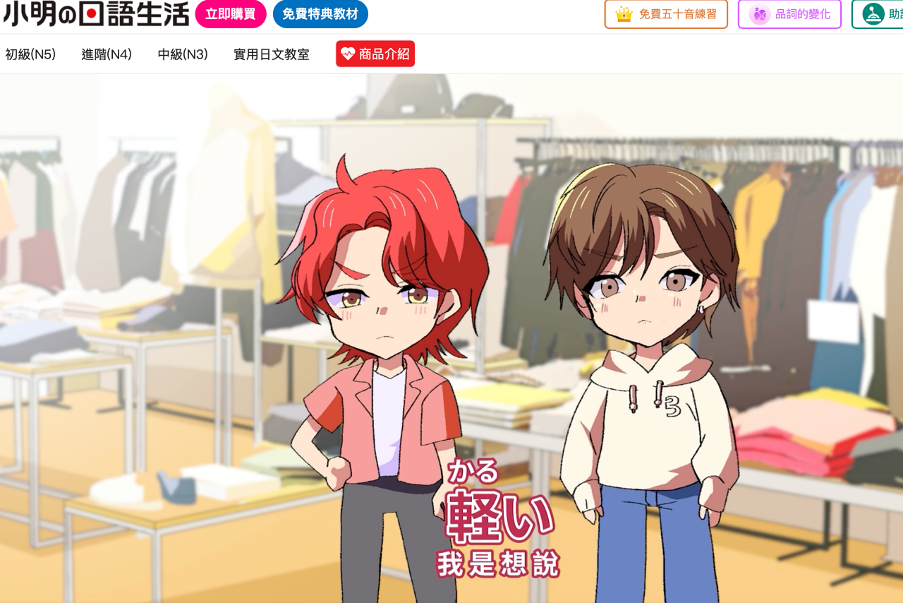 【小明の日語生活】 最大特色是首創用動畫方式來學習日文,只要15分鐘就可以上完一課。動畫內容都很生活化,加上有不同人物的對話,格外生動有趣。N4課程設計了16個生活情境主題,每個主題會有2-3部短動畫,每部片長約10~15分鐘。