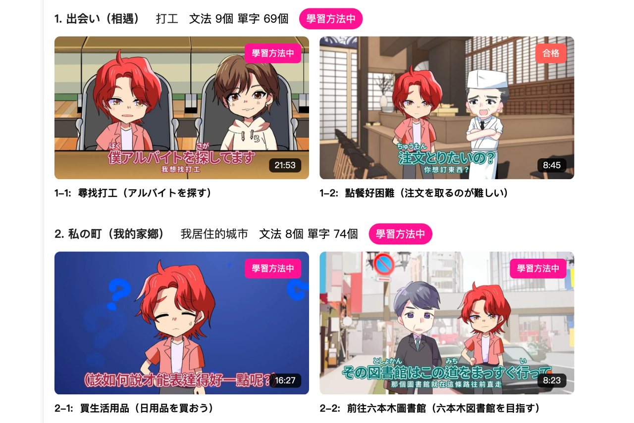 動畫語速可以依照自己的程度調整,初學者可以放慢、進階者可以加快訓練聽力。我常常在通勤的時候打開手機觀看,很適合平常要上班又想學日文的上班族(比如我,哈哈哈)。每天用瑣碎的時間累積起來,也是不小的學習力量。
