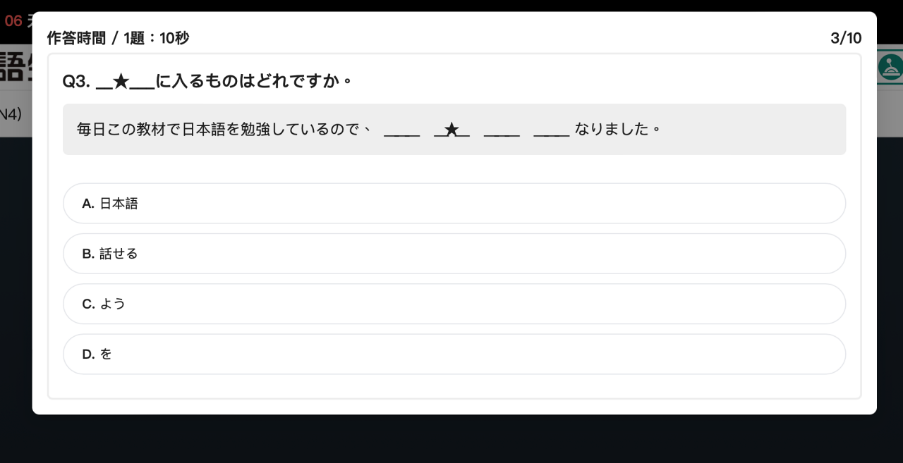 如果說N5是基本單字練習,那N4就是學習單字+文法的結合跟使用邏輯。N4更著重在日文的十大品詞應用(動詞、形容詞、形容動詞、名詞、副詞、連體詞、接續詞、感嘆詞、助動詞、助詞),從文法解說、例文、複誦練習,更進一步學習日本人的日常生活對話方式。