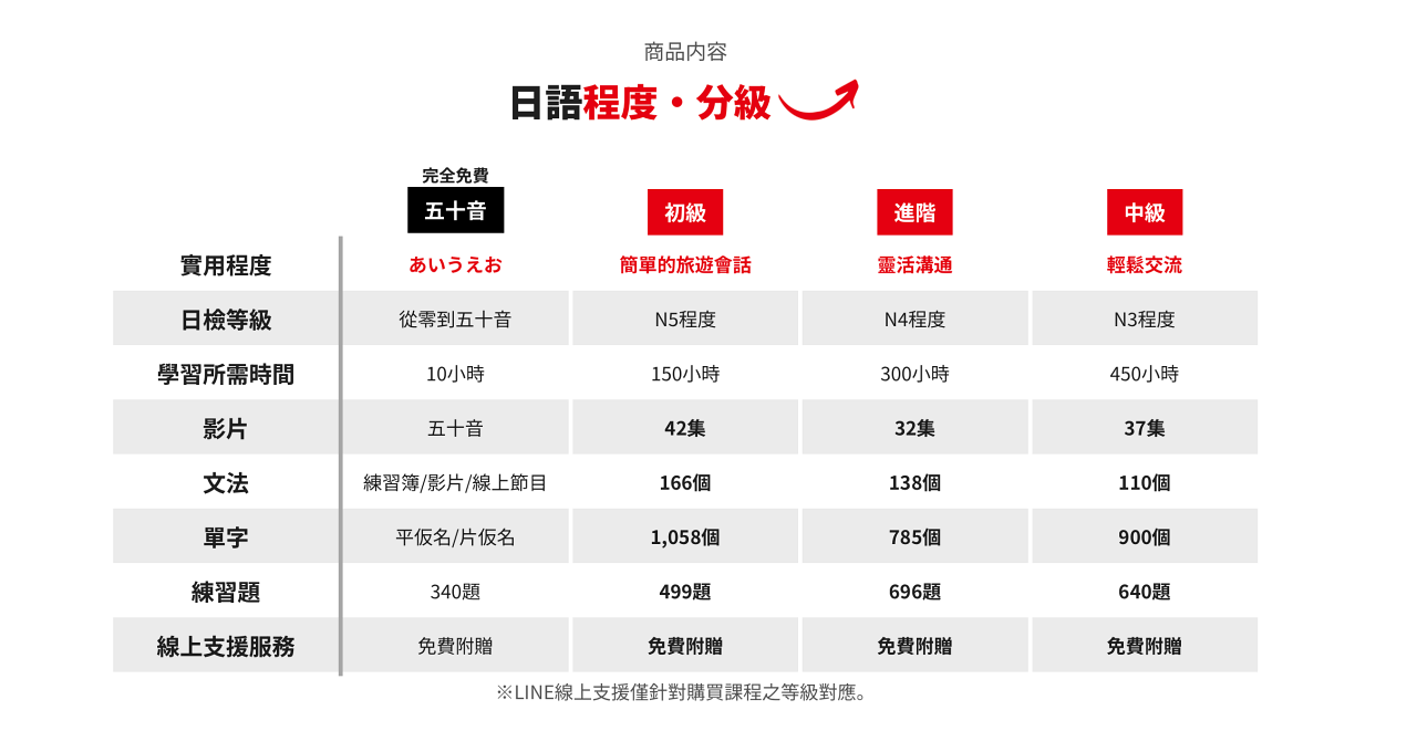 可以依照自己的能力來選擇適合的課程內容,有初級、進階、中級三種,提供內容差別也有整理出一張比較清楚的比較表,不管是哪個階段,都搭配專屬的LINE客服協助學習過程的問題解答,不用擔心學習上遇到困難不知道問誰的窘況。