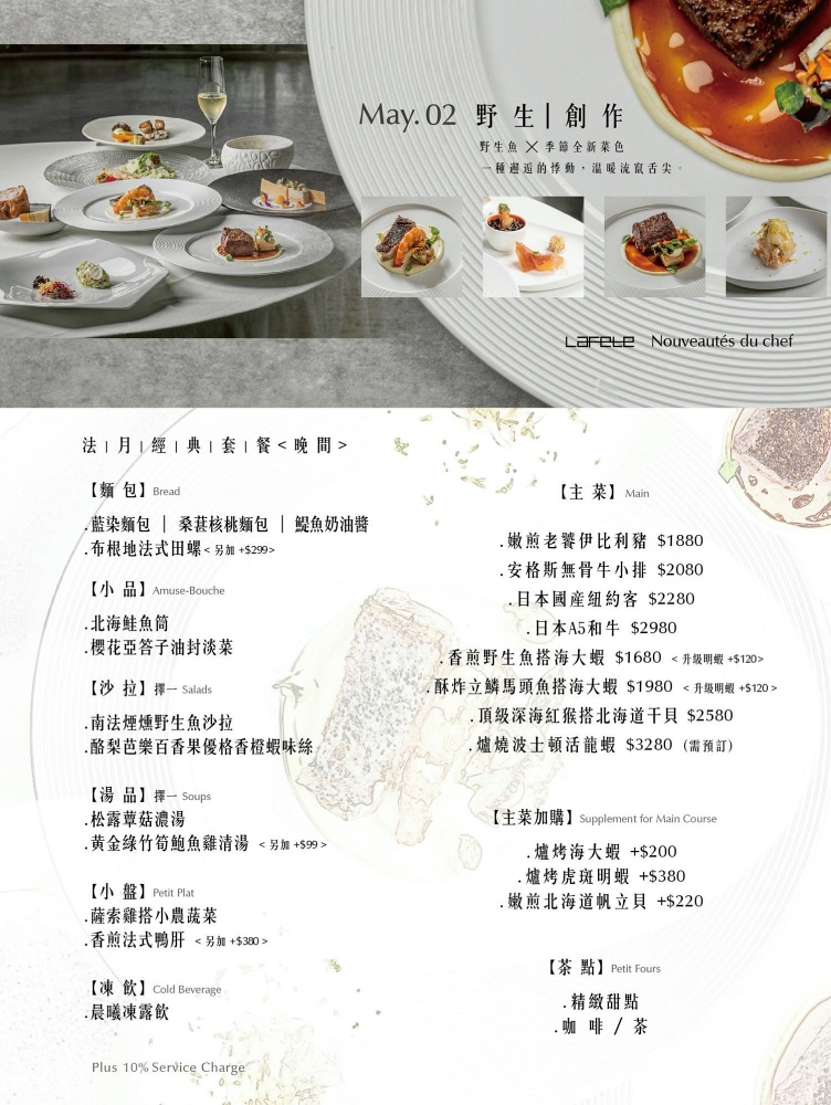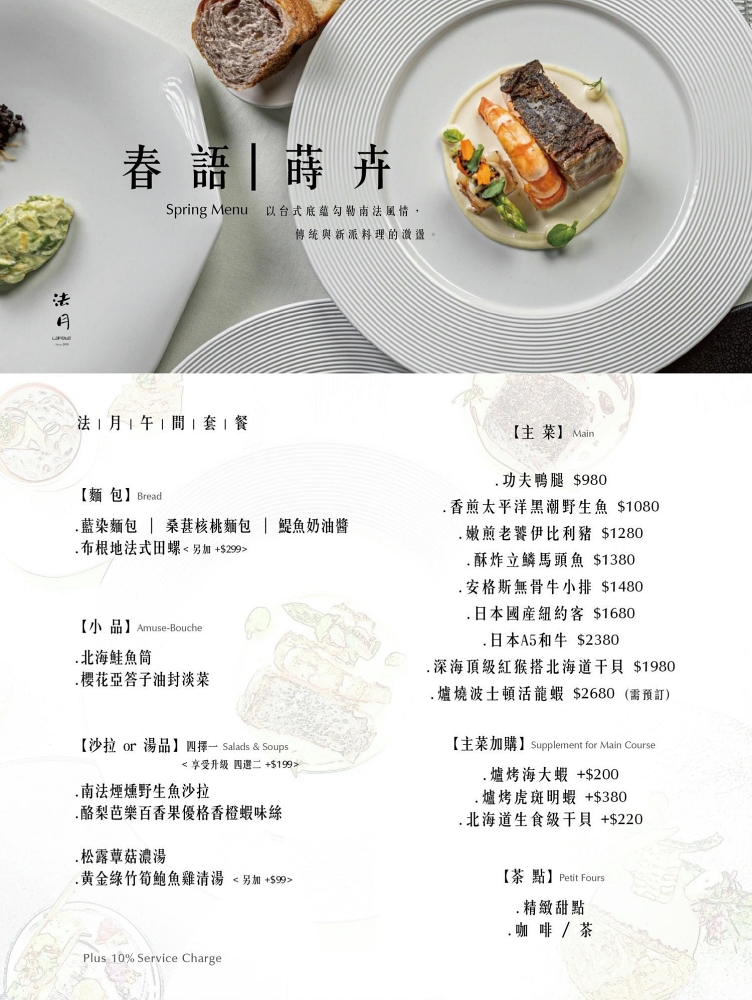 法月經典套餐/晚餐價格1680~3280元(晚餐、假日全天供應)