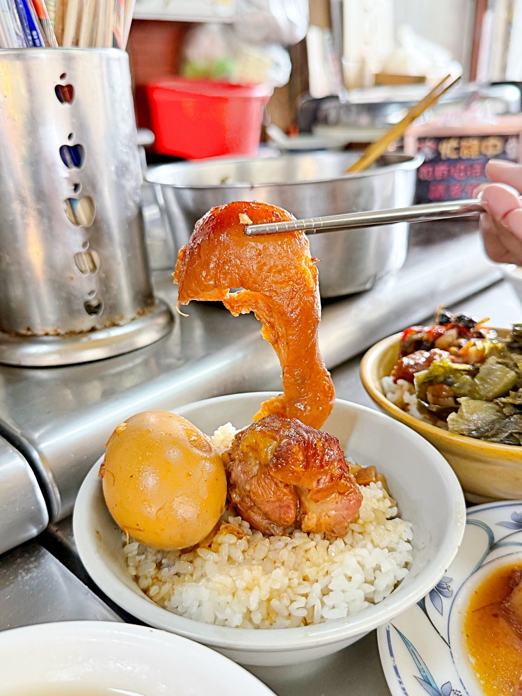 這鍋焦糖色澤的爌肉飯是每天清晨滷製的,每一塊肉都滷到入味,可以選擇要瘦一點、肥一點還是肥瘦適中。也有不少客人是特地來打包爌肉飯回家當一道菜,光是看到這樣的焦糖色澤就讓人口水直流啦。