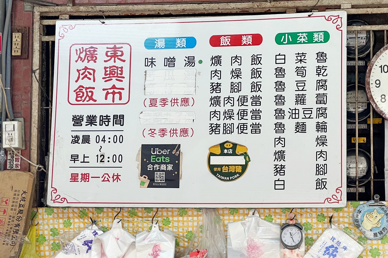 被網友稱為台中最強滷肉飯、爌肉飯的【東興市魯肉義】在台中總共三家:北區漢口路、北區東興市場、太平區中山路,據說創始店是東興市場這家,營業已經將近40年。不過名氣最大的是漢口路店,豬飛也是從小就吃漢口路東興市魯肉義,直到最近因爲逛東興市場意外的發現創始店。早上4:00開始營業到中午12:00,通常接近中午11點就差不多售完,我們是11點到的,老闆娘已經在陸續收攤中。