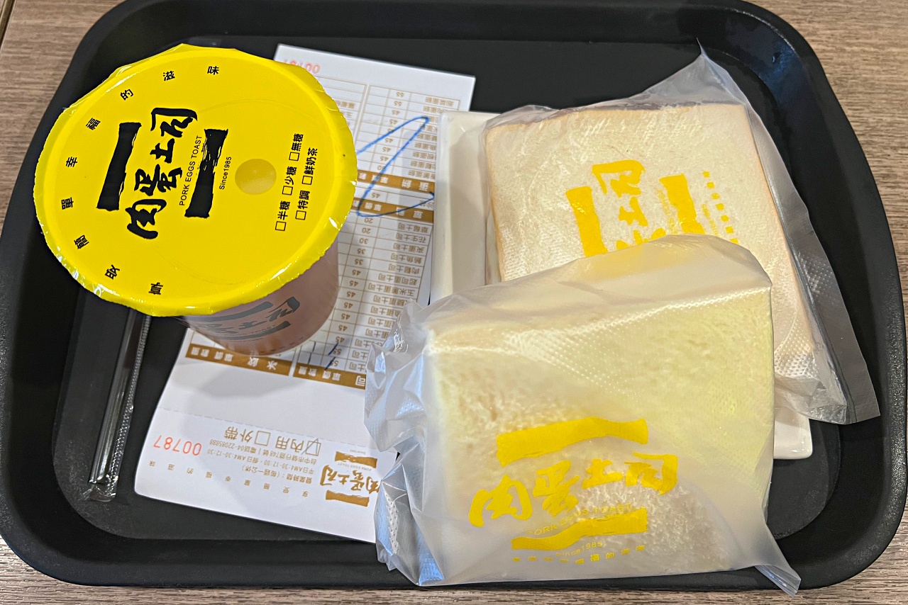 ▲豬飛每次來點的萬年不變點法:肉蛋吐司、沙拉吐司、冰奶茶。