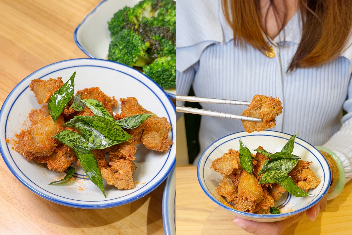 「咖哩KFC」這道小點以酥炸未來肉製作,外層炸得金黃酥脆,很有口感。用咖哩風味調味,真的很像炸雞耶,是不少人喜歡的下飯小點。