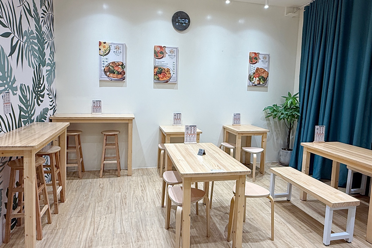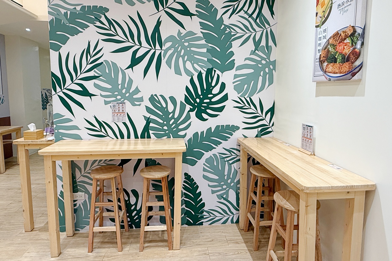 用餐區座位安排得算寬敞,有四人桌、兩人桌也有適合一人用餐的高腳椅區。店內掃碼點餐,採自助式取餐,不需要太多的互動,點餐後只要等著取餐就行囉。