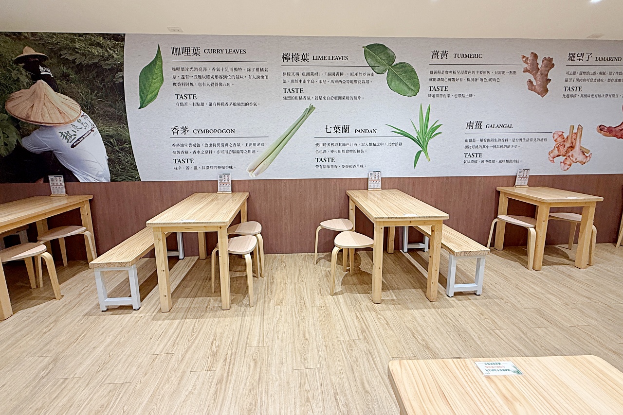 空間裡是一種輕鬆又帶點南洋風格的氛圍,簡潔明亮,搭配木質桌椅與暖色系燈光,放眼望去沒有多餘的佈置,給人舒服自在的感覺。