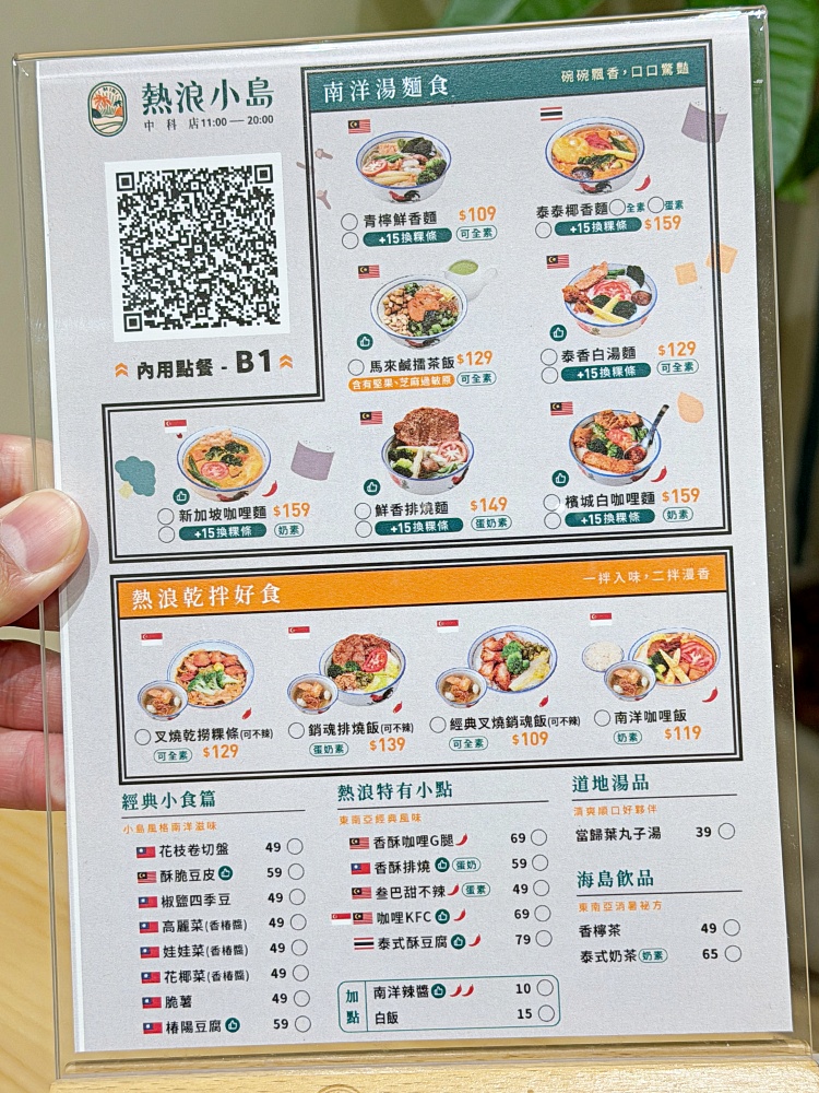 台中中科這一帶的餐廳很多元,除了連鎖品牌與商業午餐,還隱藏了不少風格鮮明的特色店。像是主打南洋蔬食料理的「熱浪小島 台中中科店」,就是網友討論度高的口袋名單,「熱浪小島」在台中開了不少分店,中科店是最近新開的分店,營業2個月左右。餐點以馬來西亞、新加坡的南洋風味為主題,運用香料、椰漿、新鮮食材食材,做出香氣濃郁、視覺豐富的蔬食料理,我才來第一次就頗驚艷!