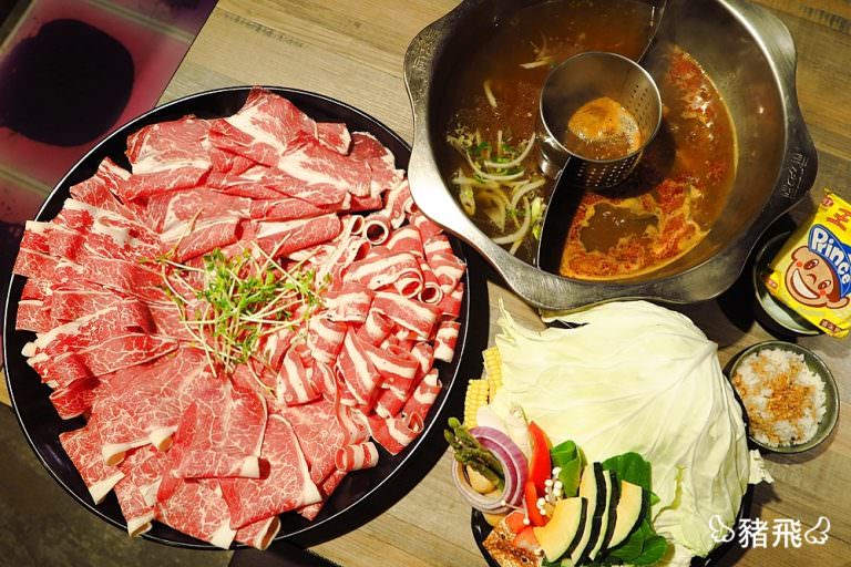 而且每家分店的鍋物有些微不同喔,這次豬飛吃的是漢口路肉多多火鍋,是以鴛鴦鍋為主的鍋物。
