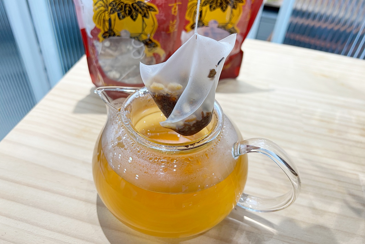 ▲「台灣五穀茶」一袋就可以回沖好幾回,這樣容量的花茶壺,實測下來大概可以回沖3次。