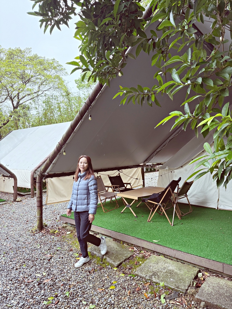另一區帳篷是「森浴區」位在高聳的大樹之間,共有20頂,真的像是住進森林裡,這裡的帳篷空間也不小,唯獨是公用的衛浴設備。
