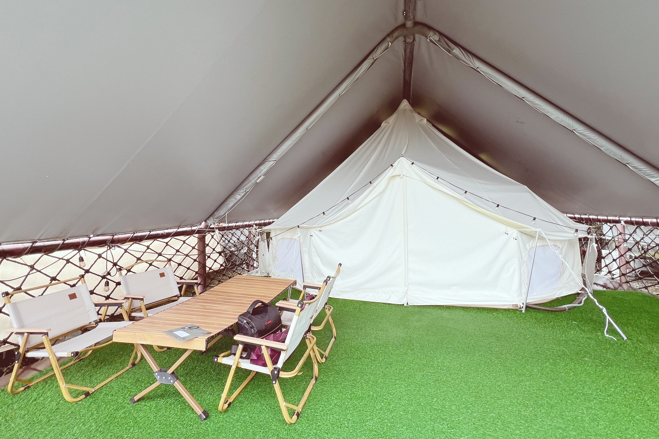 總共規劃兩大帳篷區「俯雲區」、「森浴區」。「俯雲區」有13頂神殿帳,帳篷內含衛浴設備,位在山景第一排;「森浴區」有20頂帳篷,使用公共衛浴設備,位於森林中。