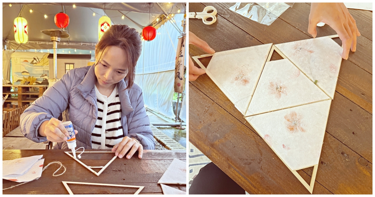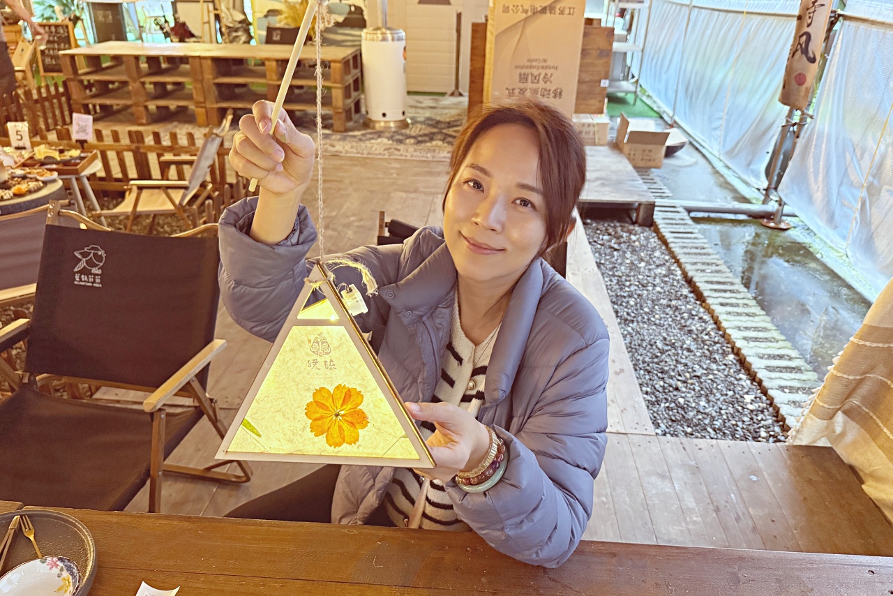 ▲這次的DIY手作是燈籠製作,跟著工作人員的教學很快就完成自己的燈籠了,三角形設計充滿文青感。
