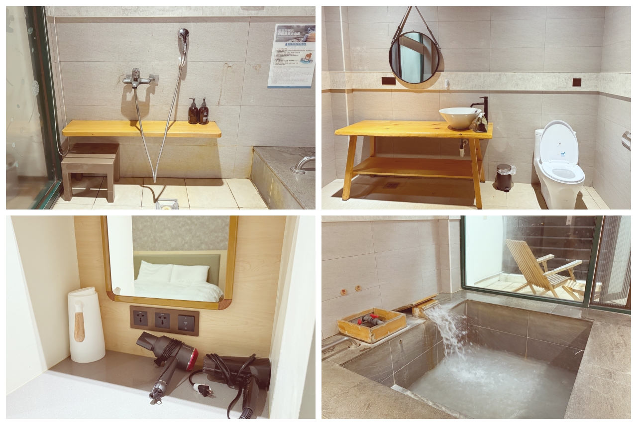 湯屋空間很可以,有臥室跟泡湯區、淋浴區,裡面有桌椅跟床鋪可以休息,夜晚泡湯不含床鋪使用,可以再升級加購。泡完湯順便洗澡,回帳篷就不用再東奔西跑,超方便!沒想到來露營能泡個湯、望個星,根本是山林版的療癒SPA Day!