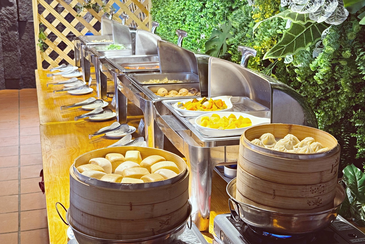 早餐吃的澎湃,多種新鮮蔬食、炸物、地瓜粥、白粥配菜、小籠包….隨便夾又是滿滿一桌,吃完早餐直接連午餐都省略了,好飽足啊!