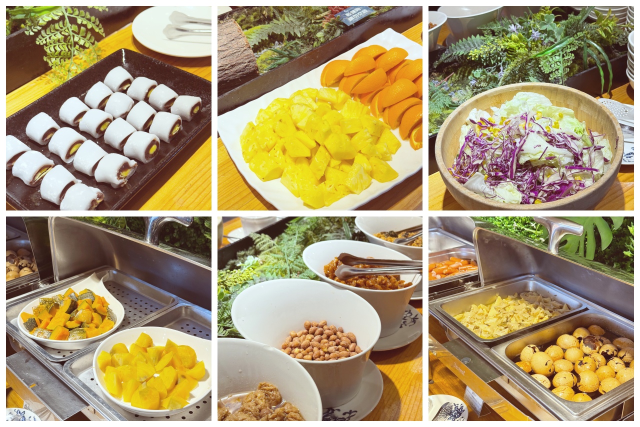 早餐時段07:30-09:30,平常出門度假都睡到自然醒的我,為了早餐7點就起床洗漱,睡眼惺忪的走到餐廳,7點半工作人員準時開門迎接旅客。餐點提供中西式選擇多樣化,加上配色也很用心,一看就開胃。