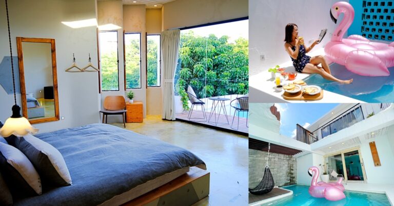 民宿裡最吸睛的莫過於半露天的私人泳池,沒想到吧!在這個老街裡有這麼夢幻充滿設計感的泳池Villa,拍不完的網美照可以直接塞滿手機記憶體。