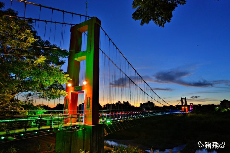 嘉義的夜景秘境在這裡!橫跨八掌溪上的美麗吊橋,夜晚好適合這裡散步賞美景。